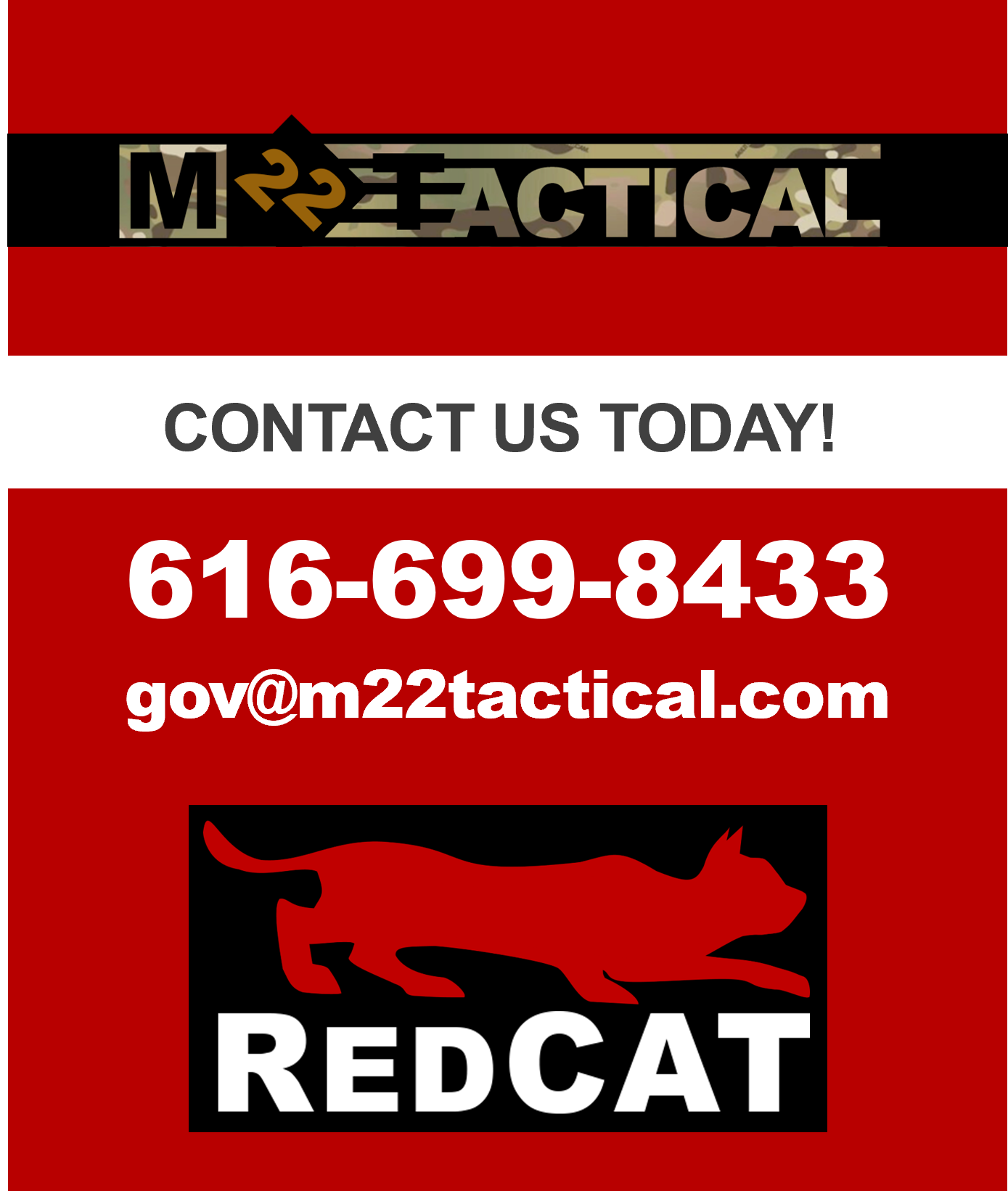 M22 Tactical travels to several key events throughout the United States every year. Come meet us and see what the RedCat is all about first hand. We’d love to meet with you and start a long and mutually beneficial relationship! In October, M22 Tactical will be at the NASGW Expo in Grapevine Texas; near DFW. Come see us!